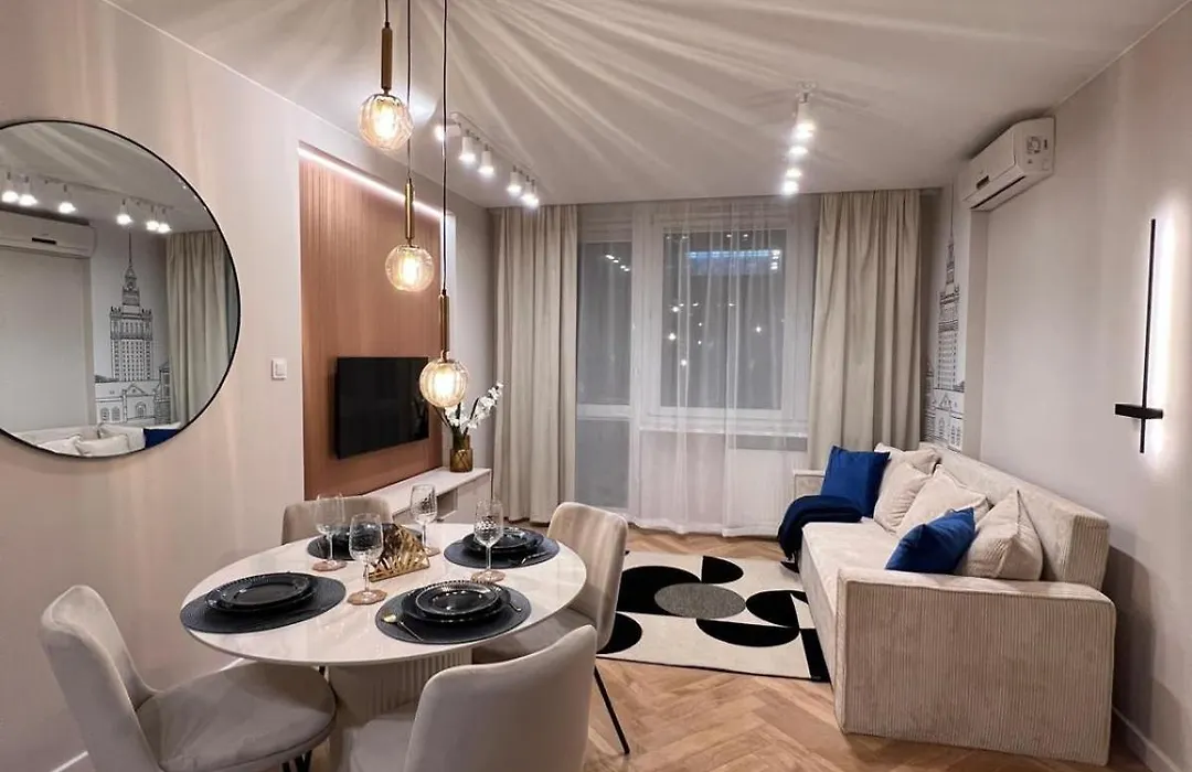 Die 1-Zimmer-Ferienwohnung Mià Warsaw - Rotunda bietet einen Blick auf die Stadt und liegt 25 Minuten Gehweg von der Altstadt von Warschau entfernt Das Apartment bietet WLAN im ganzen Gebäude.